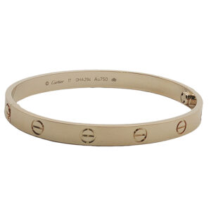 All Bracelets Earrings Engagement Rings Necklaces Rings Watches Small Yellow Gold Cartier Just Un Clou BangleView Cartier Yellow Gold Mini Love BangleView Cartier Size 17 Yellow Gold Love BangleView Vintage 18k Yellow Gold Lion BangleView Diamond Bracelet With Bar LinksView Mid-Century Diamond + Enamel BangleView Channel-Set Diamond Tennis BraceletView Deco-Style Diamond + Sapphire BraceletView Vintage Bar Station BraceletView Simon G Decorative Clasp Diamond BraceletView 14k White Gold 8.75 Ct Tennis BraceletView 9k Gold Vintage Crown BraceletView Art Deco Sapphire + Diamond BraceletView Cartier Single Diamond BraceletView Emerald-Cut Diamond Tennis BraceletView Antique Sapphire + Diamond Conversion SetView Flush-Set Diamond BangleView Fantastic Gemstone + Diamond BraceletView Skinny Diamond Tennis BraceletView Pristine Diamond S-Link Tennis BraceletView 8.5 Carat Total Weight Diamond BraceletView 18k White Gold Diamond Flower Link BraceletView Victorian Reproduction Amethyst BraceletView Tiffany & Co. Platinum + Diamond Slender Bar BraceletView Mid-Century 14k Yellow Gold BangleView Estate 4 Carat Total Diamond Tennis BraceletView Victorian 21k Yellow Enamel Locket BraceletView Showstopping White Gold Diamond BangleView Antique Opal + Old Mine Cut Diamond BangleView Victorian 15k Gold Sapphire + Diamond BangleView Tiffany & Co. Elsa Peretti Teardrop BraceletView Platinum Art Deco Diamond + Emerald BraceletView