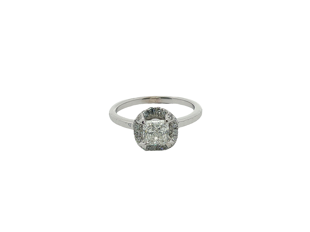 Stone(s): 0.70 cut cornered square modified brilliant diamond (GIA 2146920832), round brilliant cut diamonds (approximately 0.20 carats)