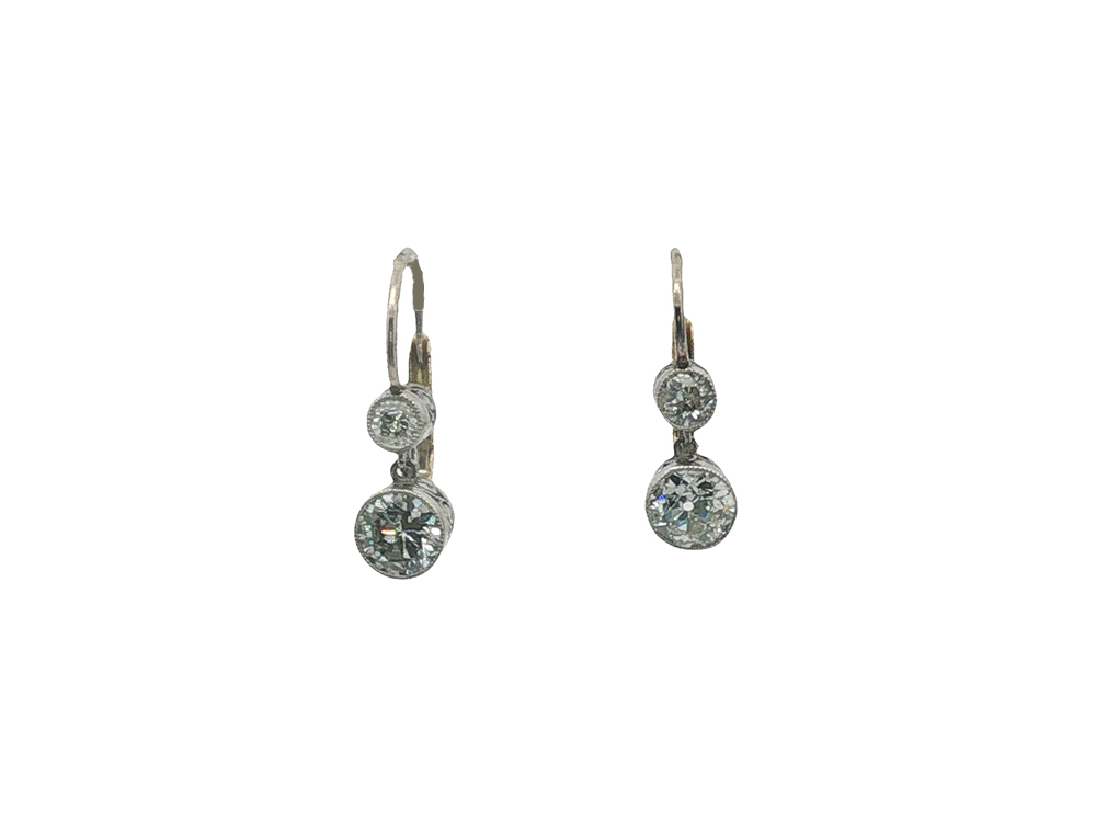 Such careful attention was paid to the construction of these earrings, they’re a marvel of antique reproduction jewelry. Fashioned in platinum and 18k yellow gold this leverback pair features approximately 1.50 carats of old European cut diamonds.