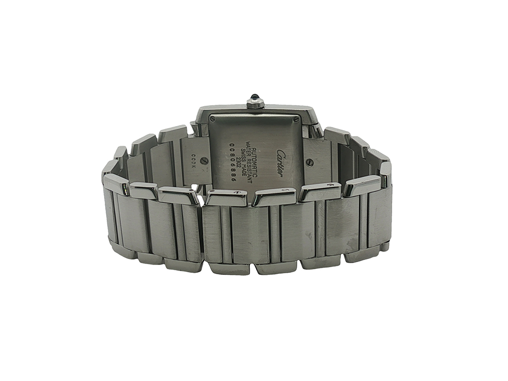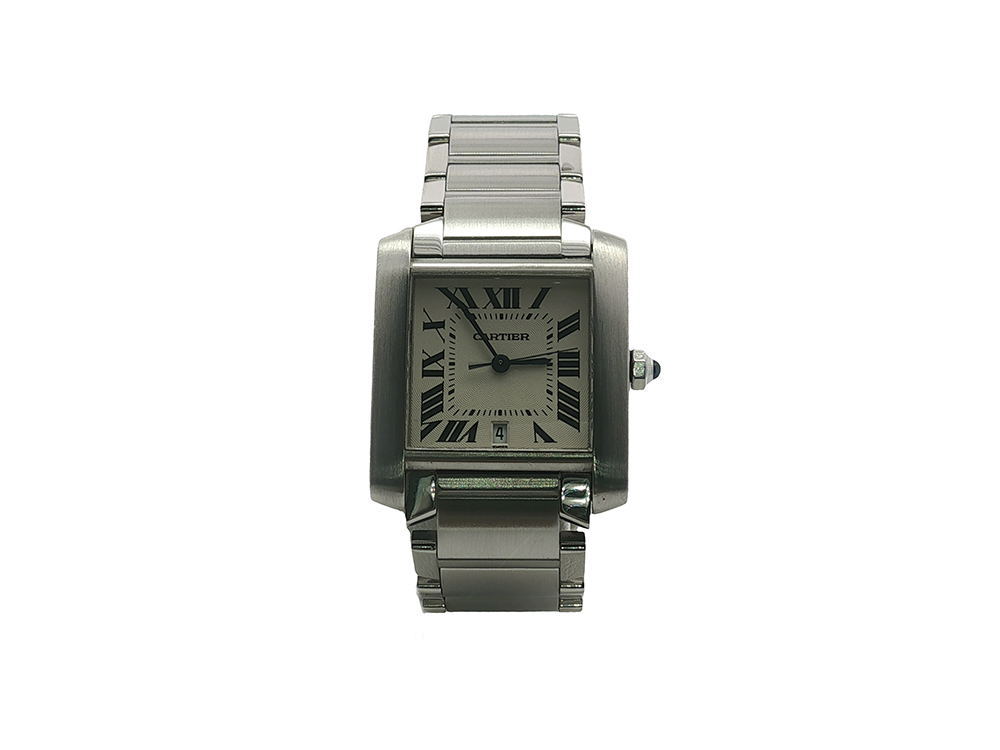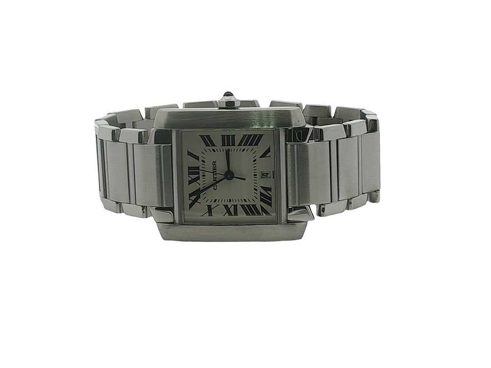 The largest of the Tank Francaise sizes, this stainless steel model features a 28 x 32 mm case.