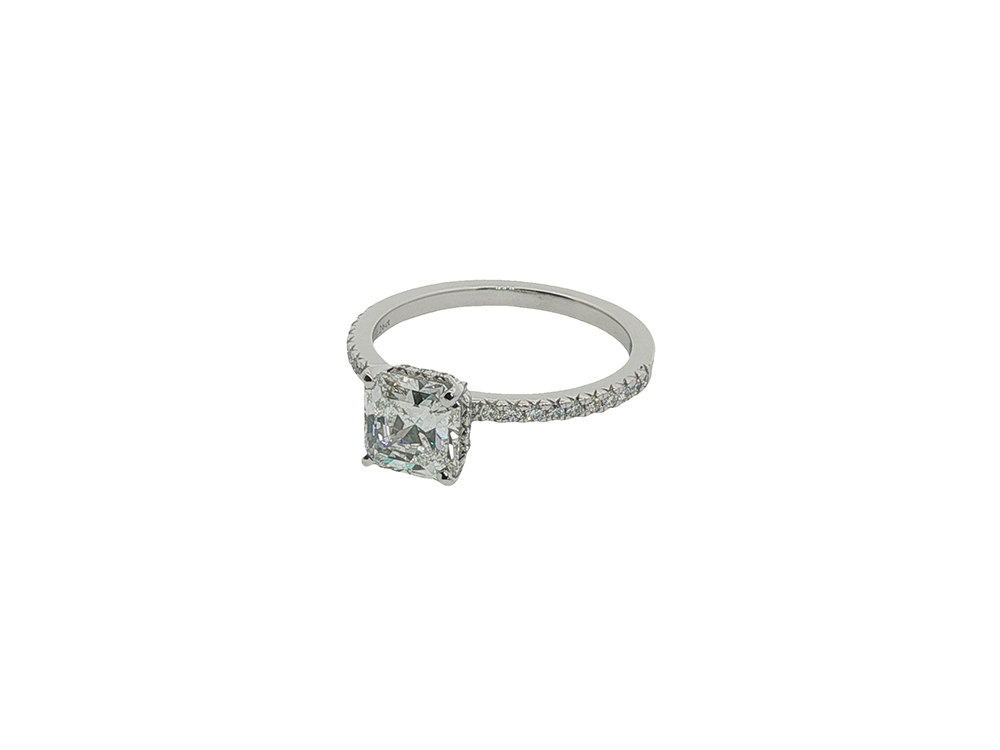 Stone(s): 1.26 carat cut-cornered square diamond, round brilliant cut accent diamonds (total weight of 0.16 carats)
