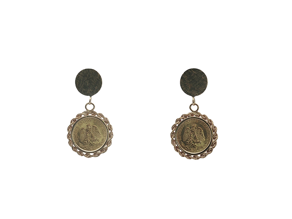 Two gold karats are repped in these earrings – the earring components and rope chain are 14k, while the Dos Pesos coins are 21.6 karat (ie 90 percent gold).